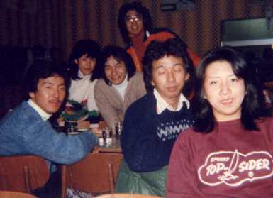 ![]() 長野のドライブインで、浜谷さん、梶村さん、中野さん、いさおさん、ばんちゃんです。 |