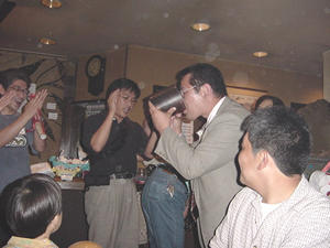 負けた修ちゃんは、なんだかわからんお酒のブレンドを 一気飲みさせられちゃいました!