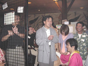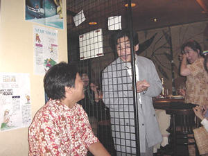最後の締めに、恵介さんのごあいさつ! 網越しのてっぺいに突っ込まれながら、「毎年やろか」宣言。 みんな 大喝采でした!