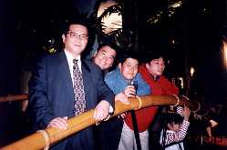 | さて、この二人は誰でしょう? 自他ともに認めるプレイボーイだった・・・。 平岡君とケンシンです。 元ファンの皆様、ごめんなさーい。 |